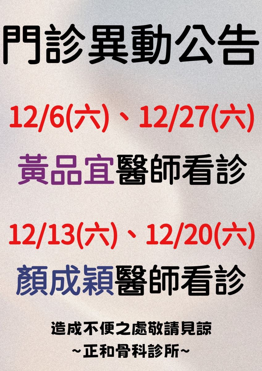 12月份週六門診異動如下