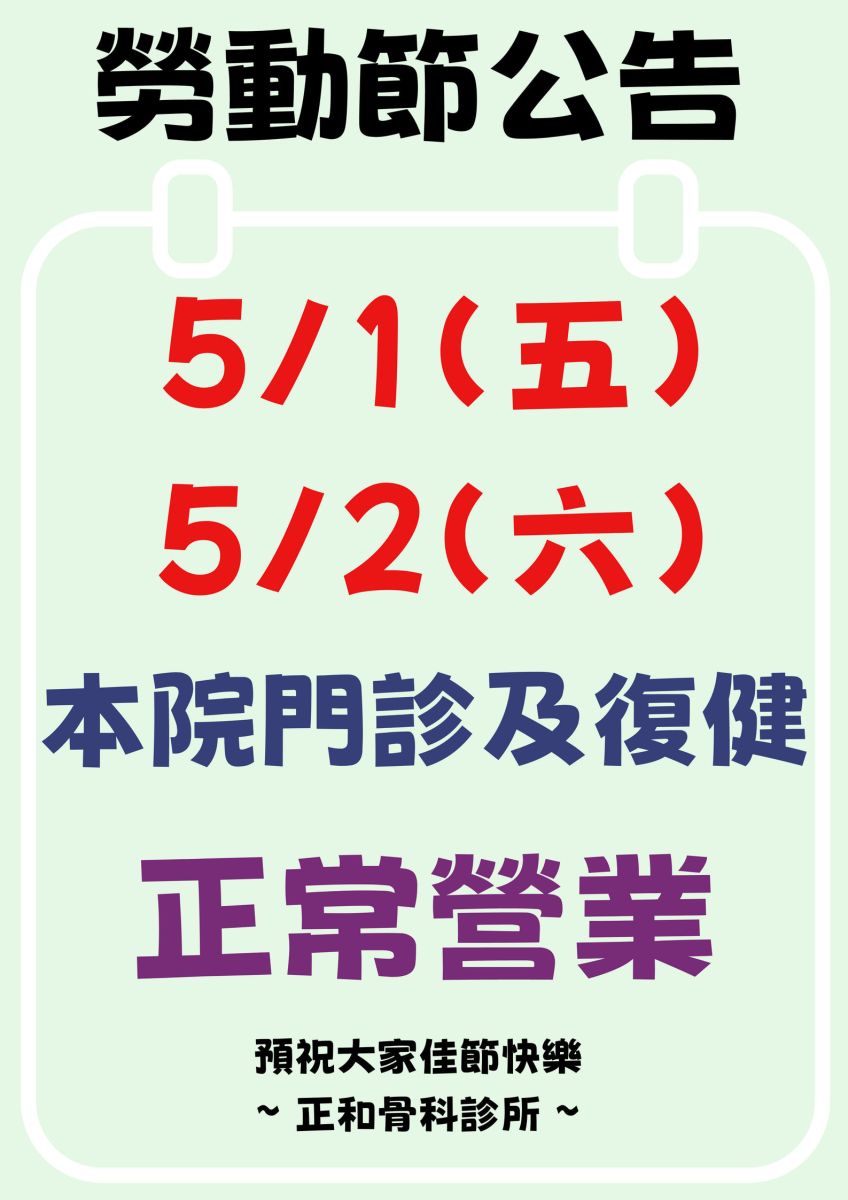 勞動節連假5/1(五)、5/2(六)